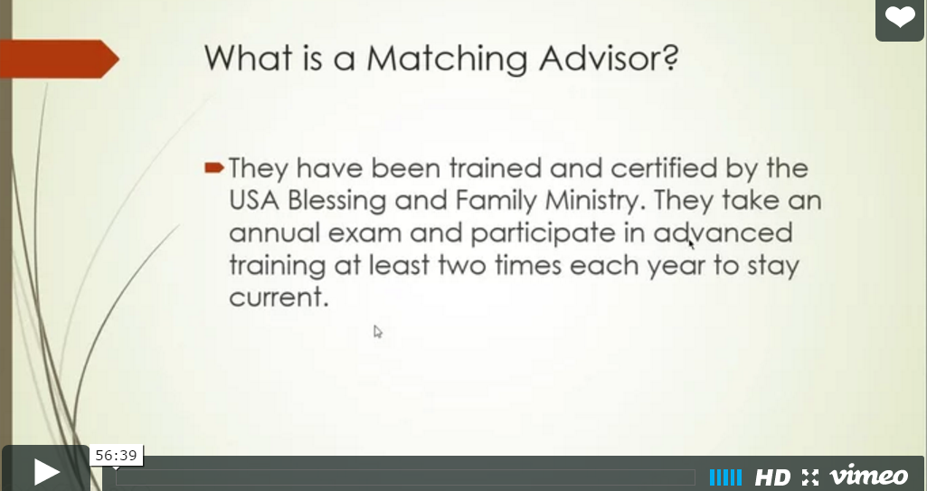 Is your family interested in learning about the matching process and networking with other Unificationist families? This Family Matching Support presentation focuses on the question “What is a Matching Advisor?" and "How can they…