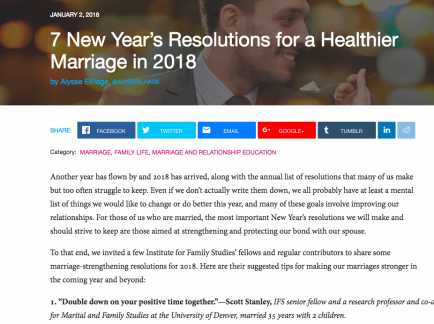 Since January is the month for making new goals, Alysse ElHage asked seven of the top contributors to the Institute for Family Studies website to share their best advice for making New Year’s resolutions in our marriages. What a great way to begin the new year!