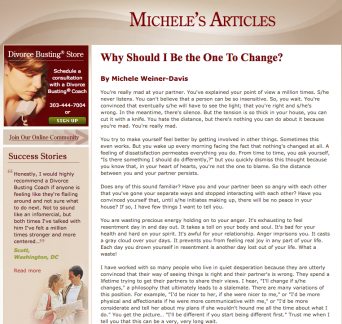 Marriage expert Michelle Weiner Davis offers couples a new approach to getting out of the “waiting for the other person to change first” syndrome. She reminds us that change within relationships is reciprocal. In other words, if one person changes, the other one does too, so it doesn’t really matter who gets the ball rolling. What matters is that someone tips over the first domino.